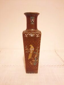 Vase cloisonné chinois oiseau rouge