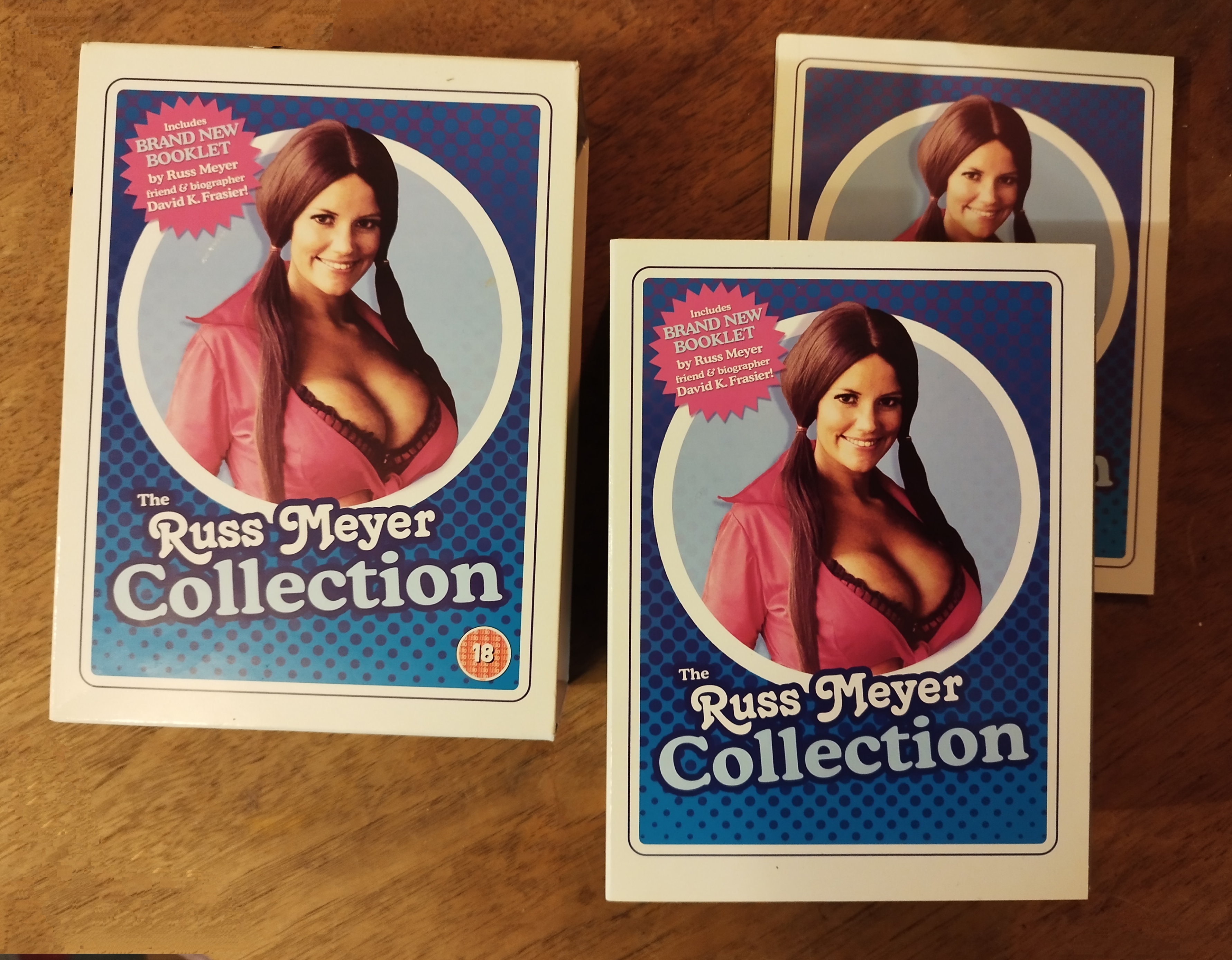 Coffret films érotiques « The Russ Meyer Collection : 19 uplifting classics! » avec son livret d’origine.